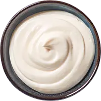 Sie schmeckt zu Pommes und Gemüse, zu kaltem Geflügelfleisch, kalt servierten Meeresfrüchten und pochiertem Fisch. Salat Mayonnaise mit 5% Pflanzenölgehalt und Hühnereigelb als Emulgator.