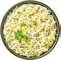 Feingeschnittenes Weißkraut in frischem mild-würzigem Dilldressing mit Joghurt und feinen Kräutern.