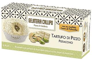 Ein intensiv aromatisiertes, cremiges Pistazienherz, überzogen mit weißer Schokolade und Pistazieneis, nur aus italienischer Frischmilch und Pistazien hergestellt, frei von Lebensmittelfarbstoffen und Konservierungsstoffen.